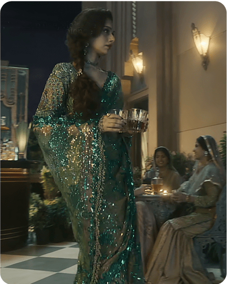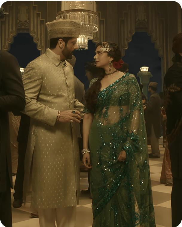 Our costume design, inspired by archival collections and historical figures like Noor Jehan and Patience Cooper, was meticulously crafted to transport the audience to the undivided India era. Working with a diverse ensemble cast, including talents like Manisha Koirala, Aditi, Sonakshi, Richa, and Sanjeeda, was a rewarding experience. The Mujra outfits were designed for both elegance and ease of movement, ensuring each character was seamlessly integrated into Heeramandi's world. Our collaboration with SLB and dedication to detail brought to life a world that is evocative and timeless, enriching the cinematic experience and leaving a lasting impact on the cinematic landscape.