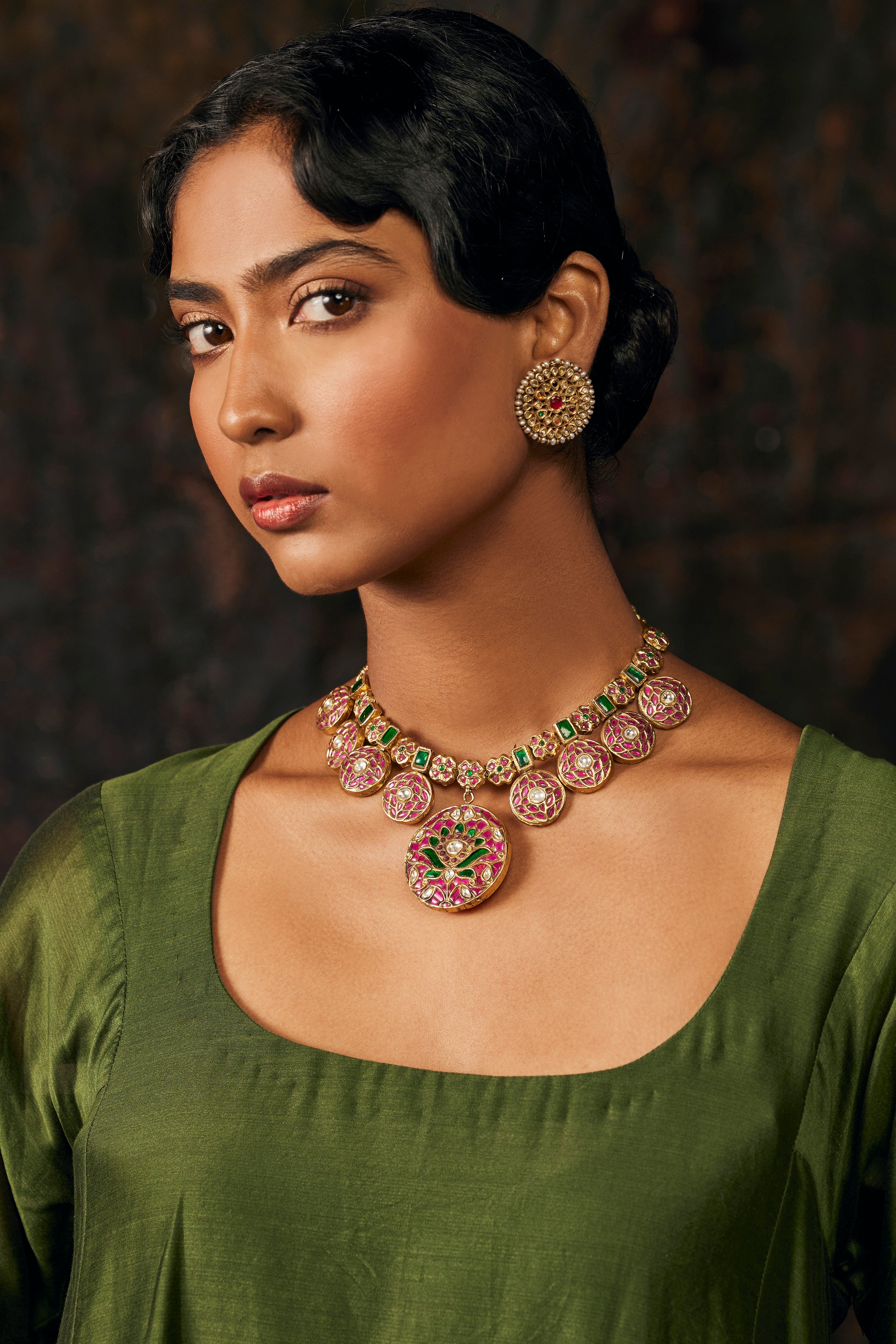 Each piece of our jewellery is meticulously handcrafted using silver and gold plating, along with carefully selected stones, pearls, and other unique materials. Due to the artisanal process, slight irregularities or imperfections may occur, adding to the distinct charm of your 'one-of-a-kind' piece. While we strive to present accurate images of our jewellery’s colour and design, please note that actual colours and details may vary slightly due to device screen settings, lighting, and other factors. Please refer to our terms and conditions for return policies in case of dissatisfaction with the product's finish (that is not a manufacturing fault).