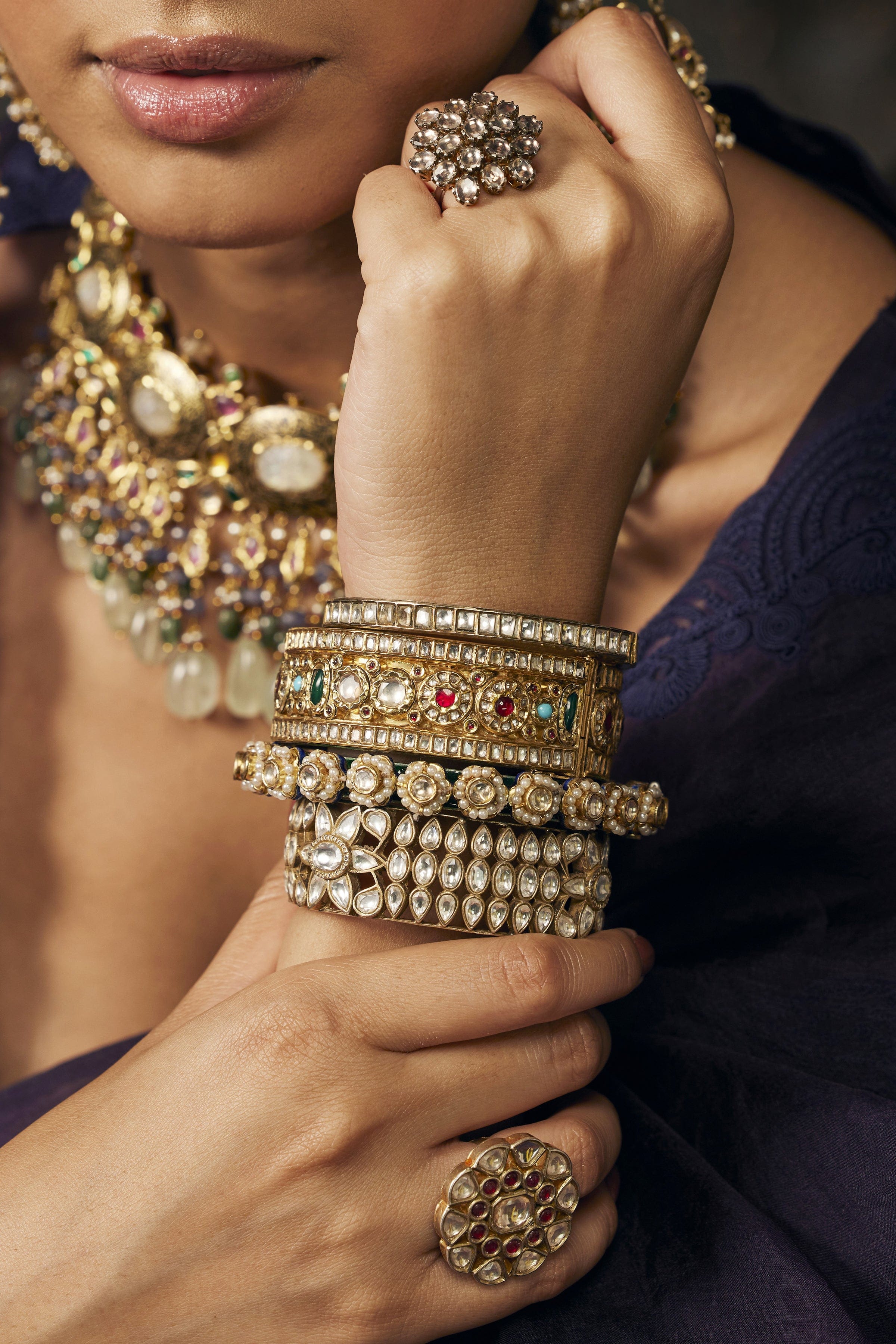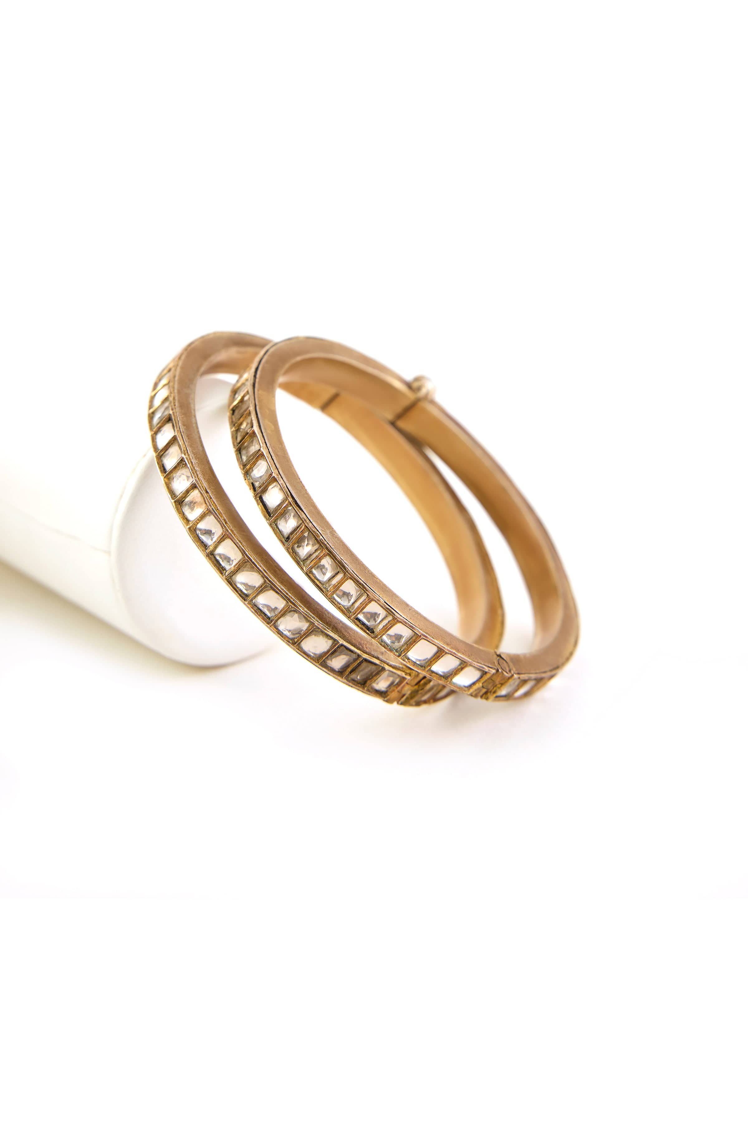 Traditional polki kada in gold infused 92.5 silver with a lock and opening for easy wear.