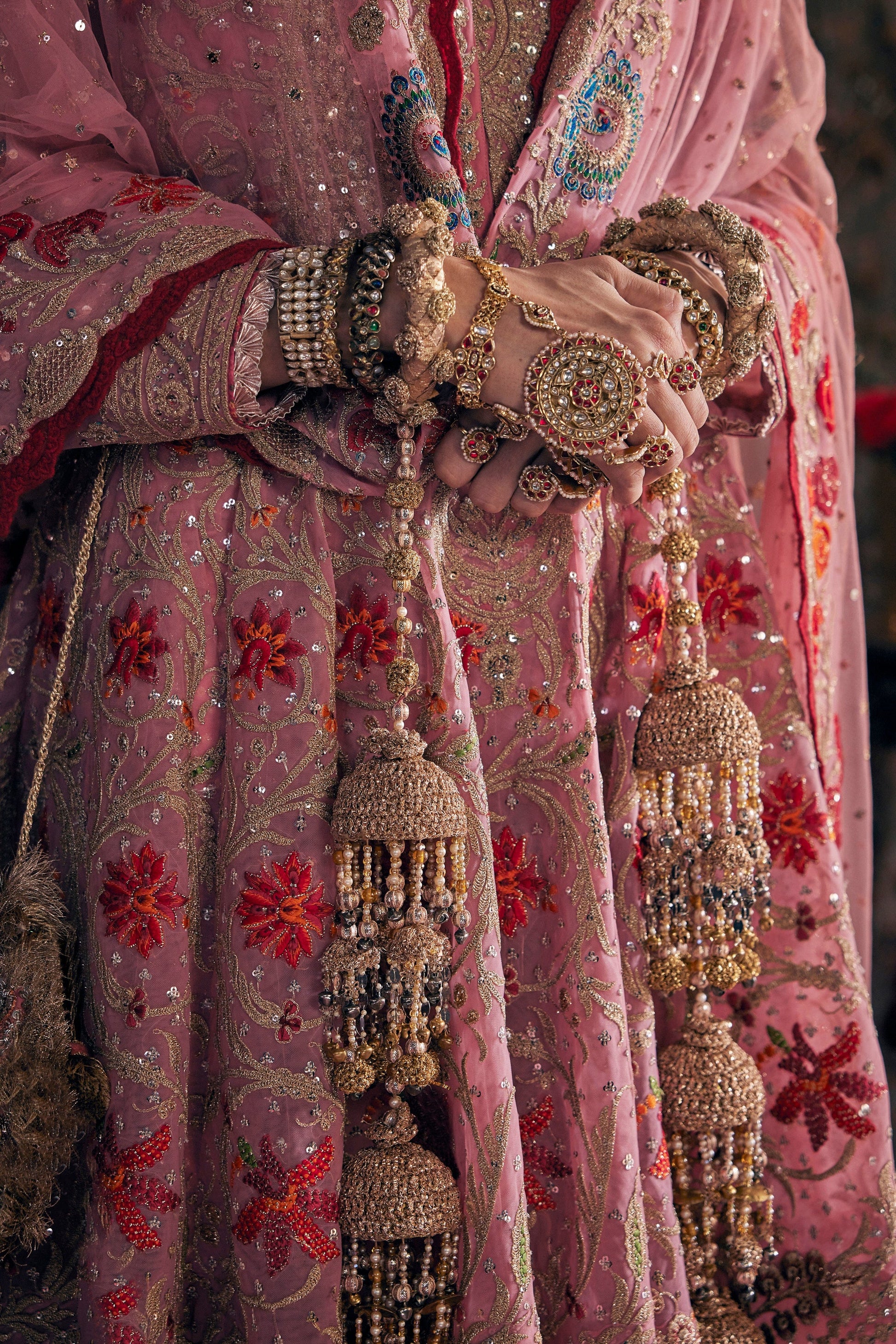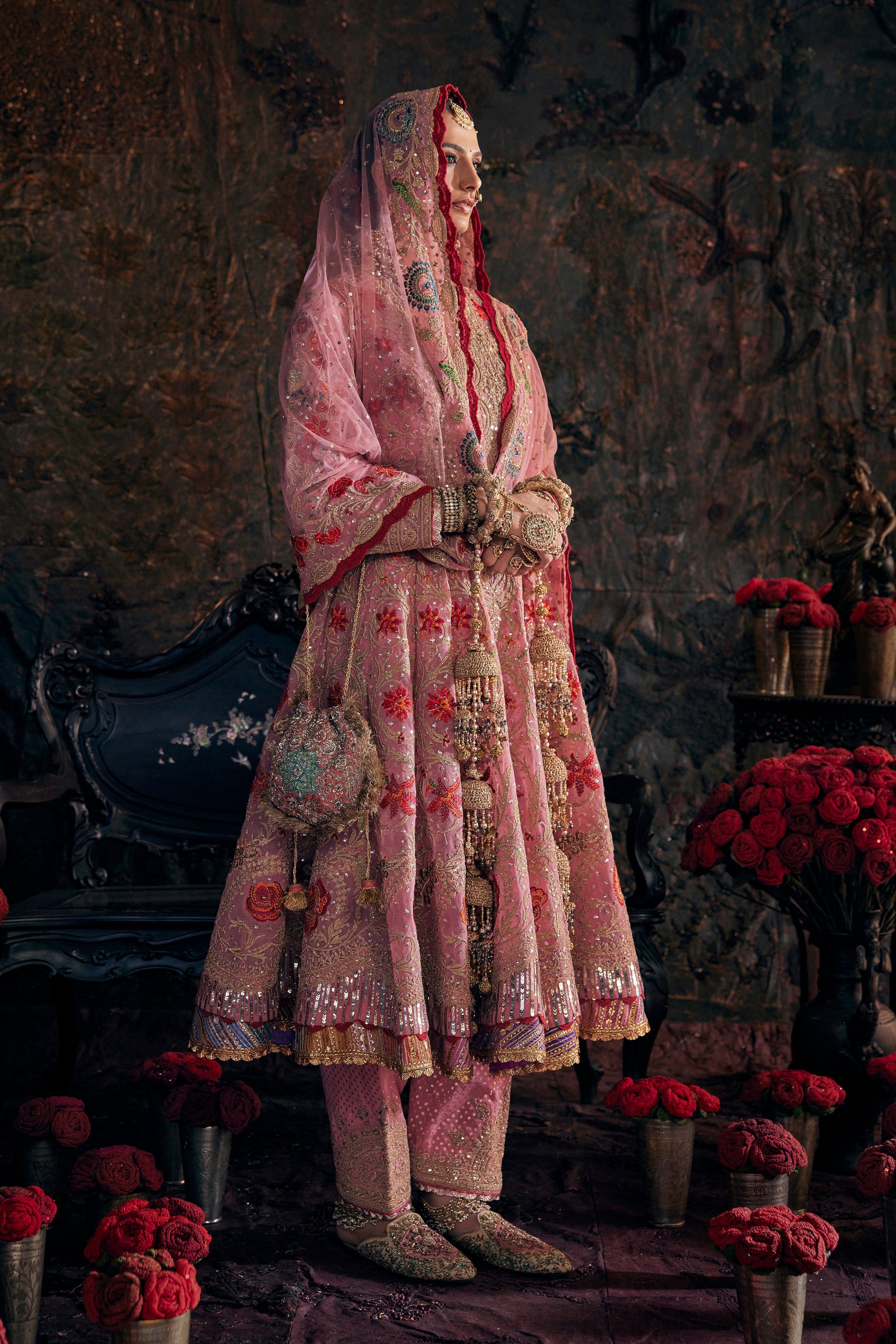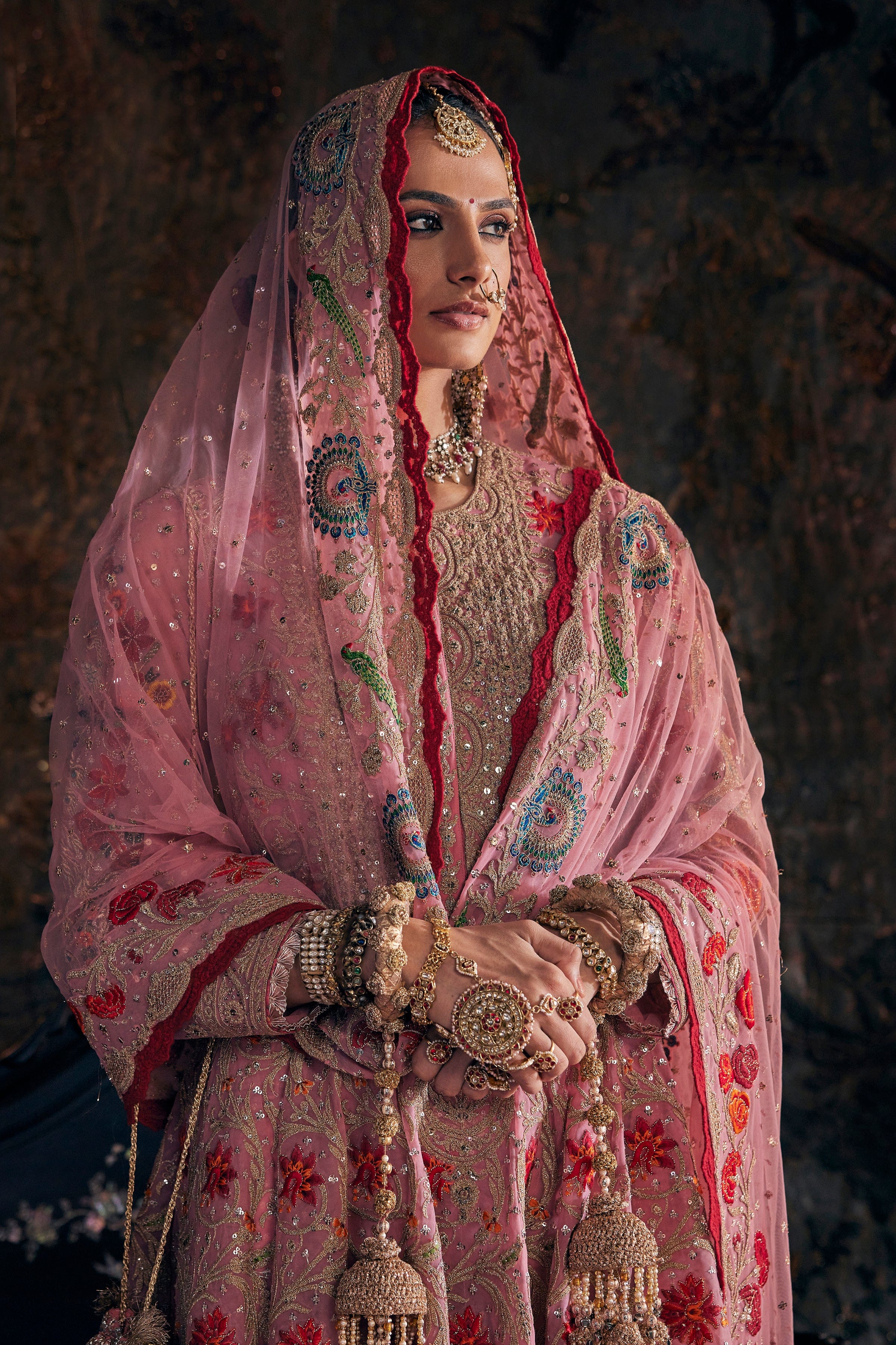 An orchid pink tulle kalidar paired with a salwar and a tulle dupatta.