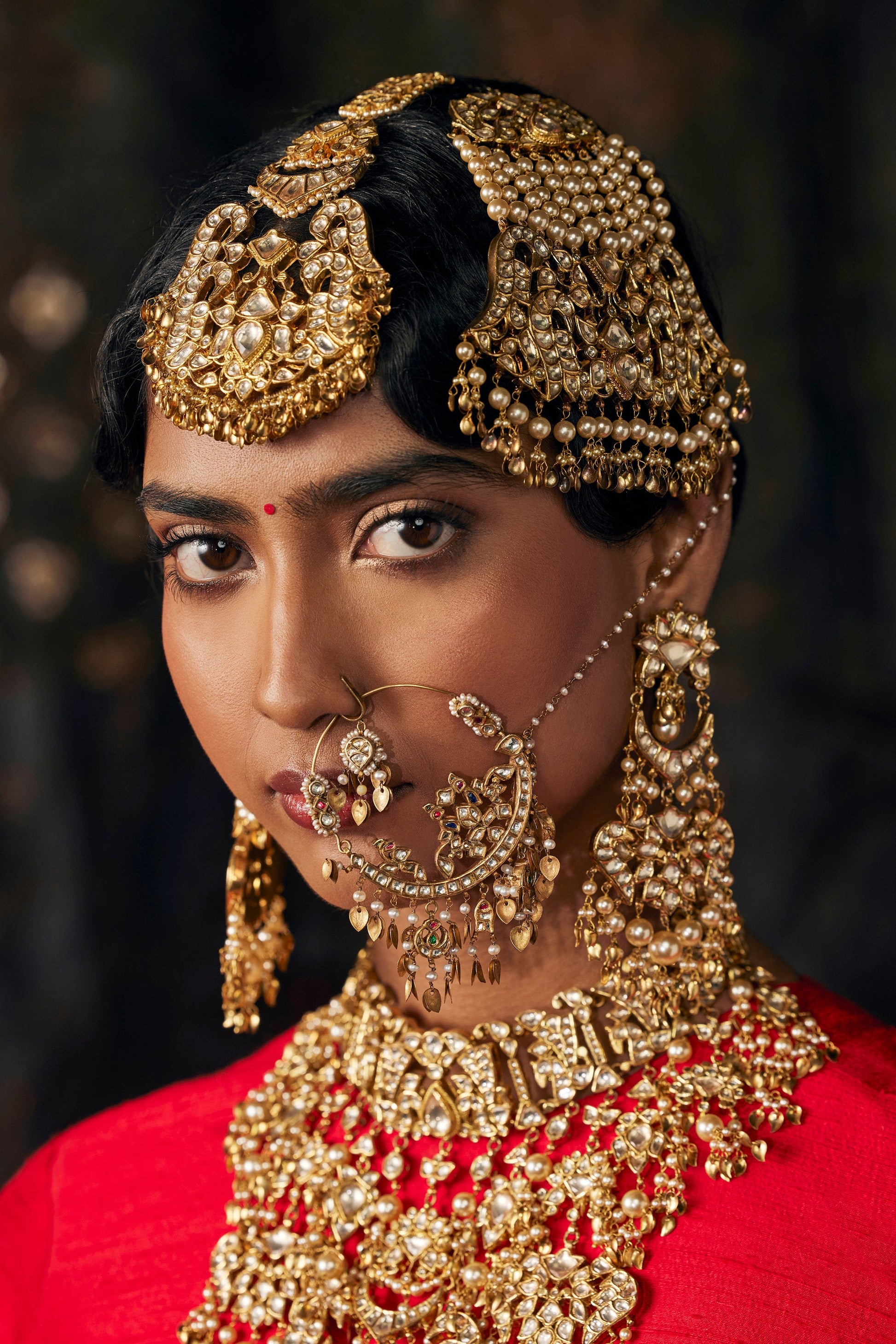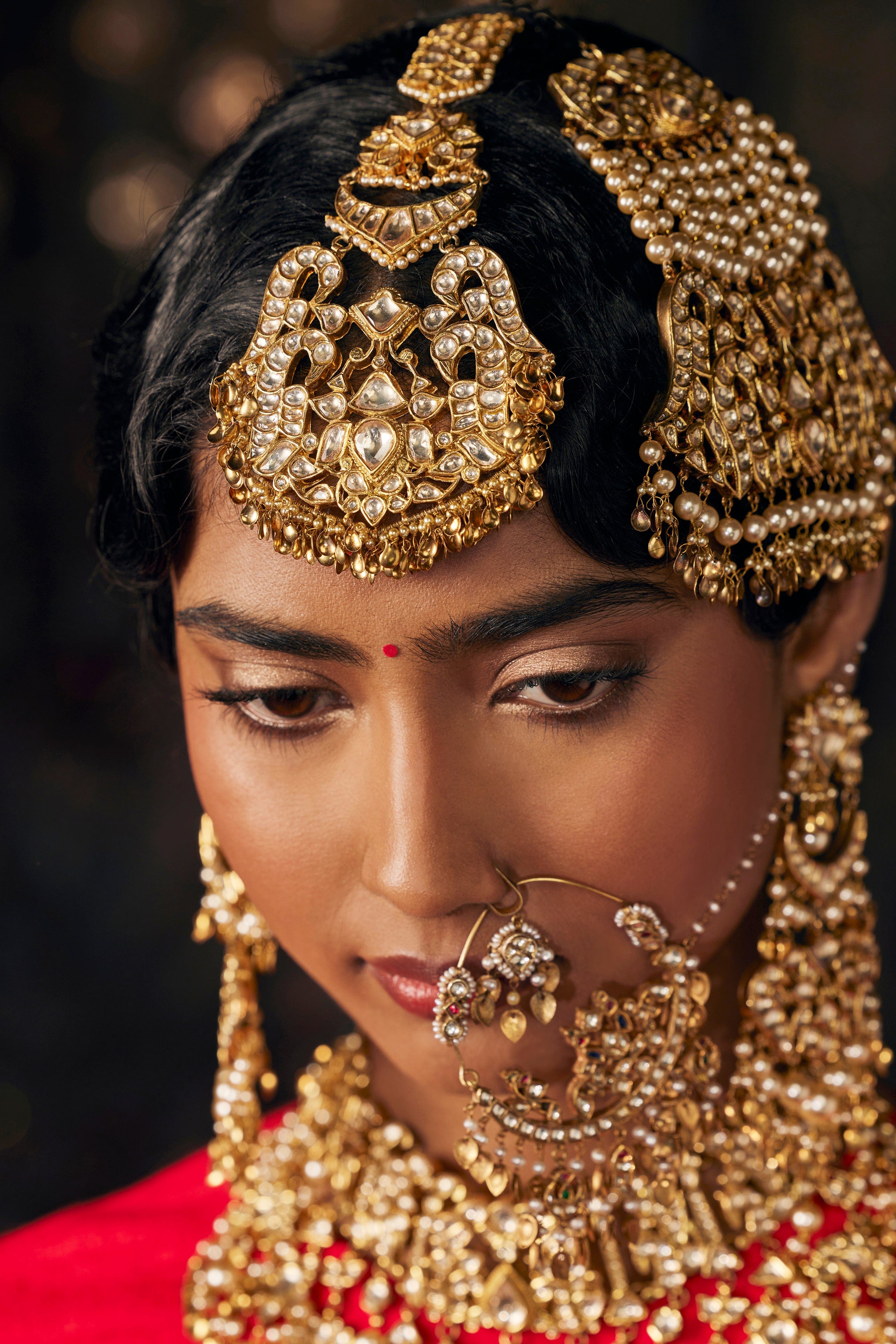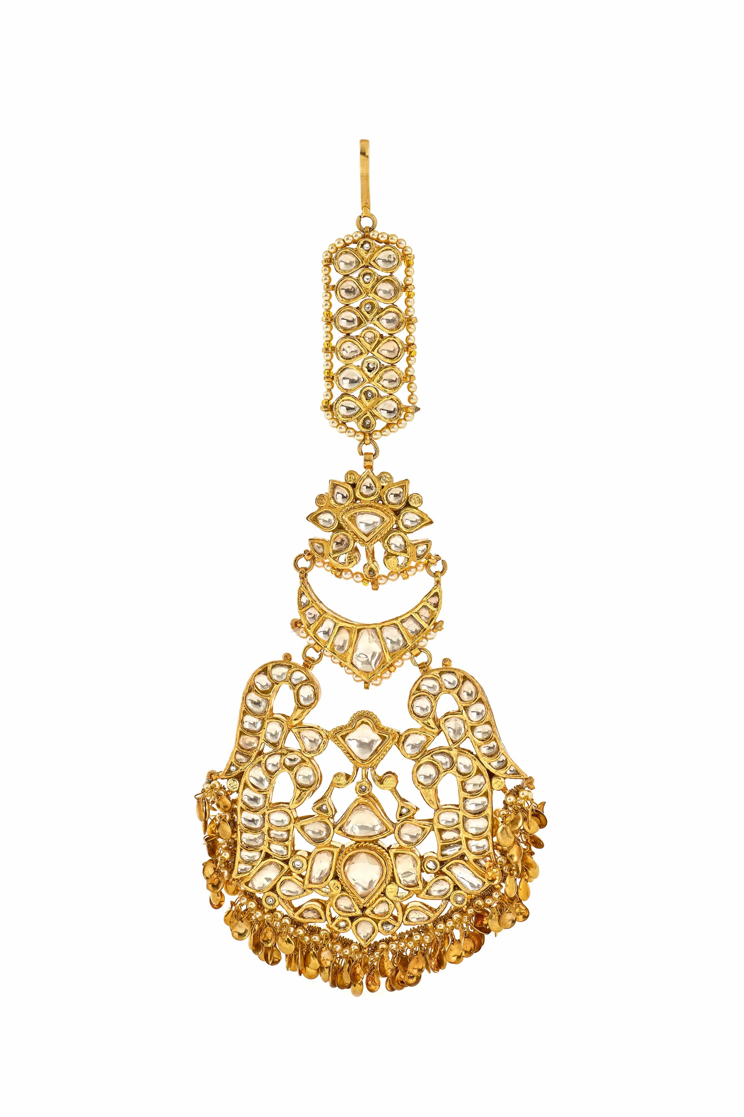 Big traditional Punjab tikka with polki and peepal pattis in gold infused 92.5 silver..