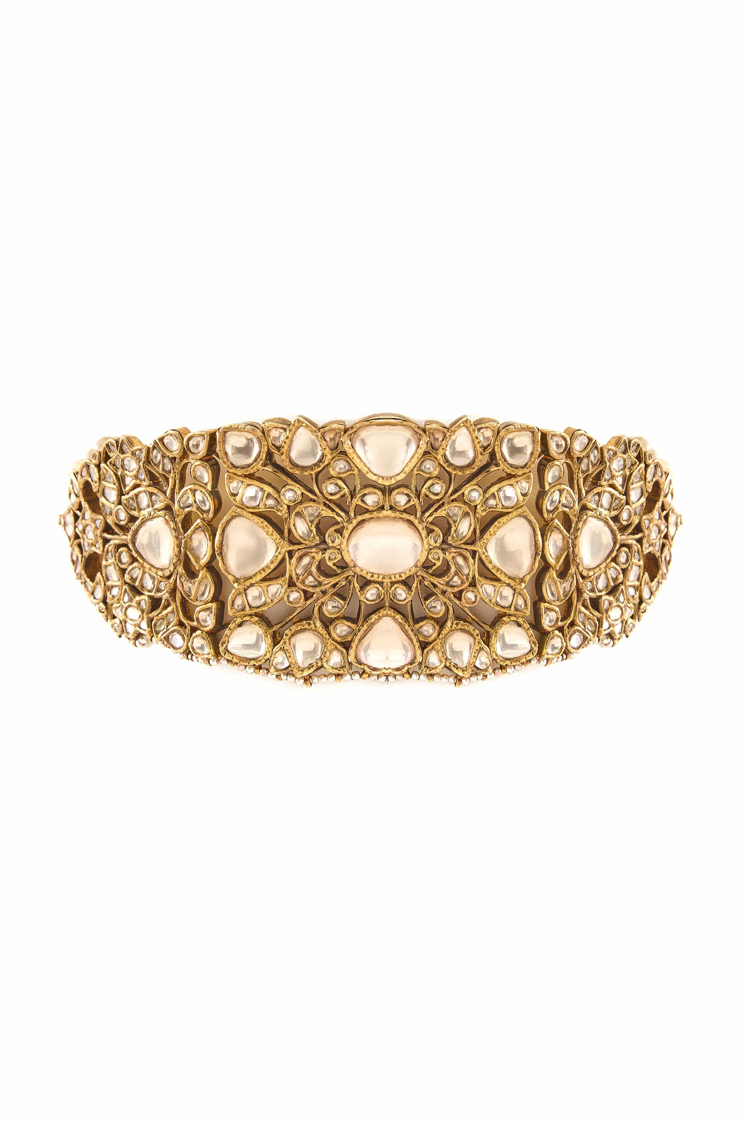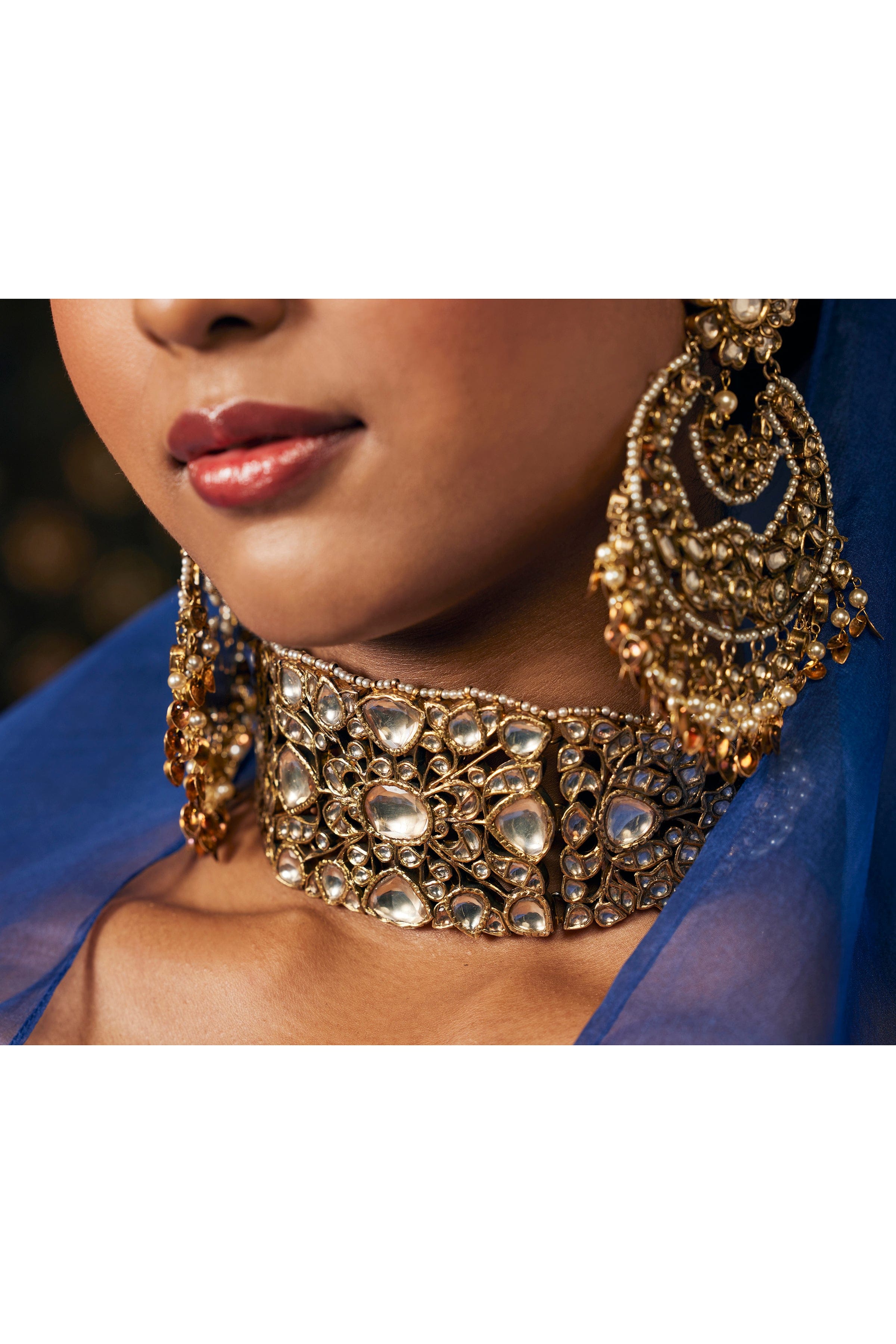 Punjab inspired big polki choker in gold infused 92.5 silver alloy. Comes with a traditional Indian dori closure.