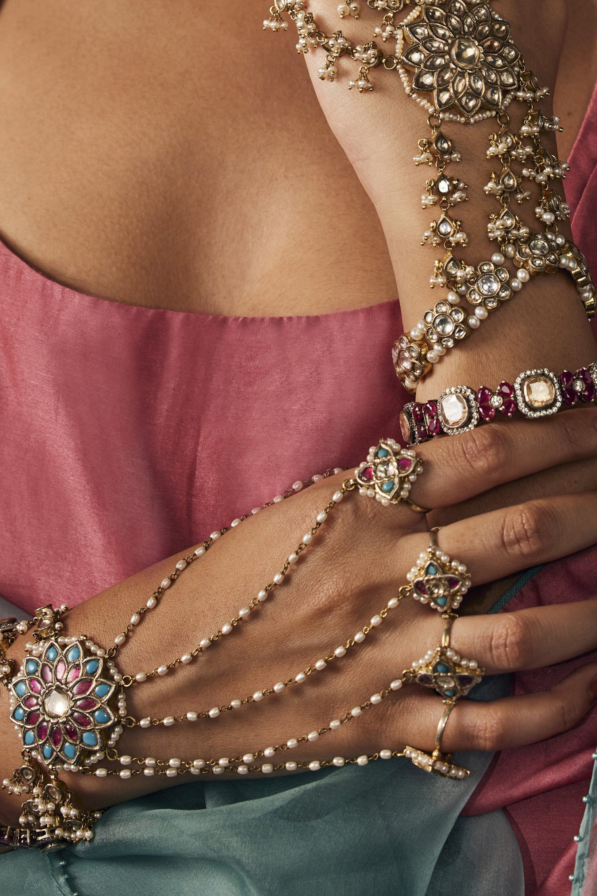 Each piece of our jewellery is meticulously handcrafted using silver and gold plating, along with carefully selected stones, pearls, and other unique materials. Due to the artisanal process, slight irregularities or imperfections may occur, adding to the distinct charm of your 'one-of-a-kind' piece. While we strive to present accurate images of our jewellery’s colour and design, please note that actual colours and details may vary slightly due to device screen settings, lighting, and other factors. Please refer to our terms and conditions for return policies in case of dissatisfaction with the product's finish (that is not a manufacturing fault).
