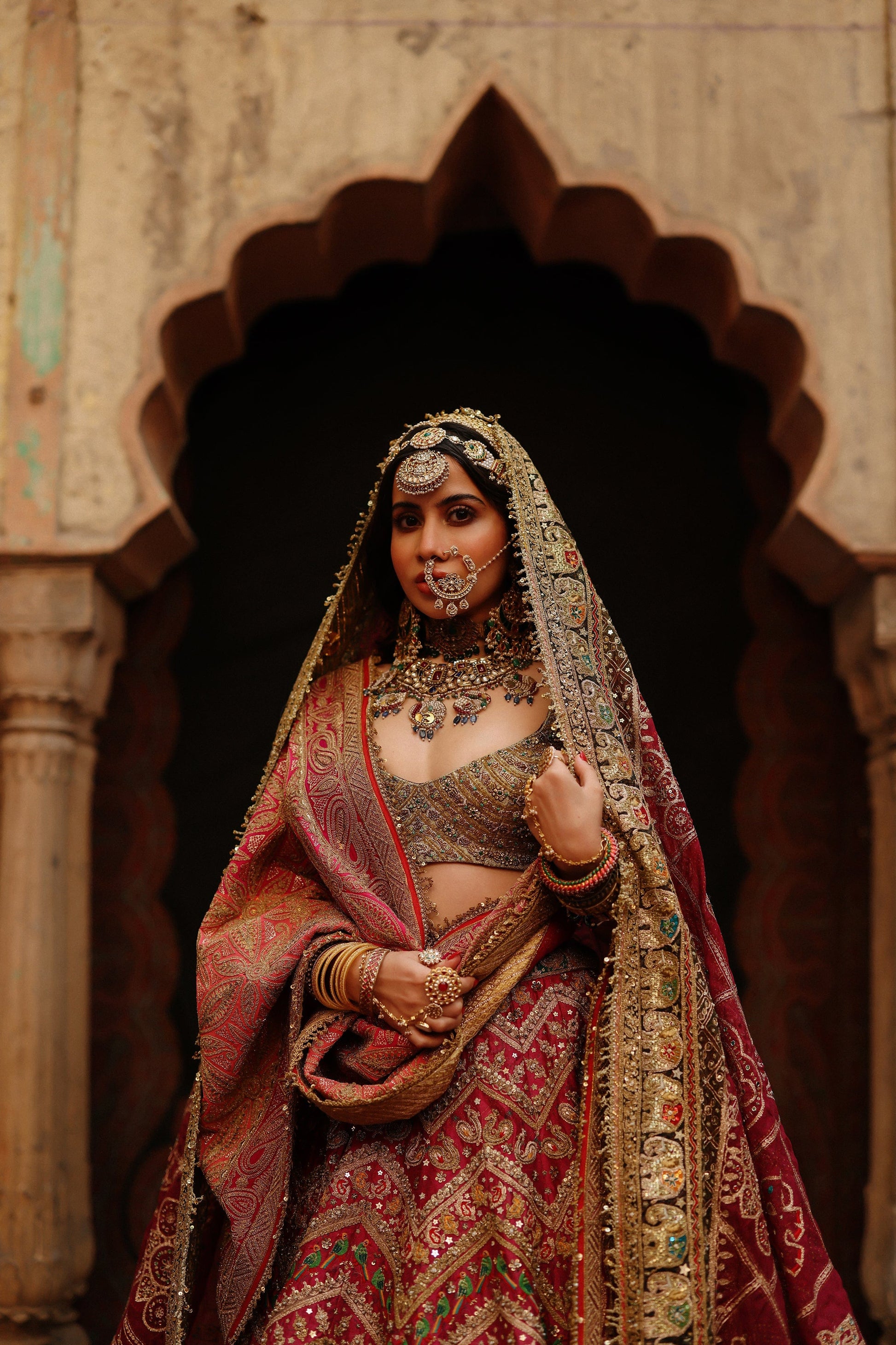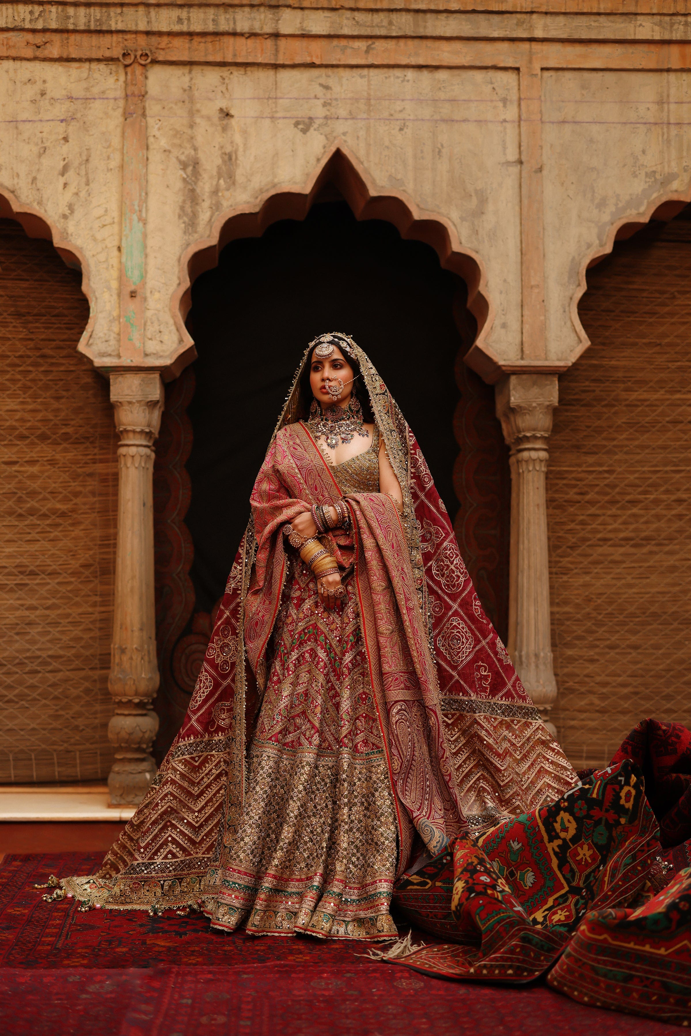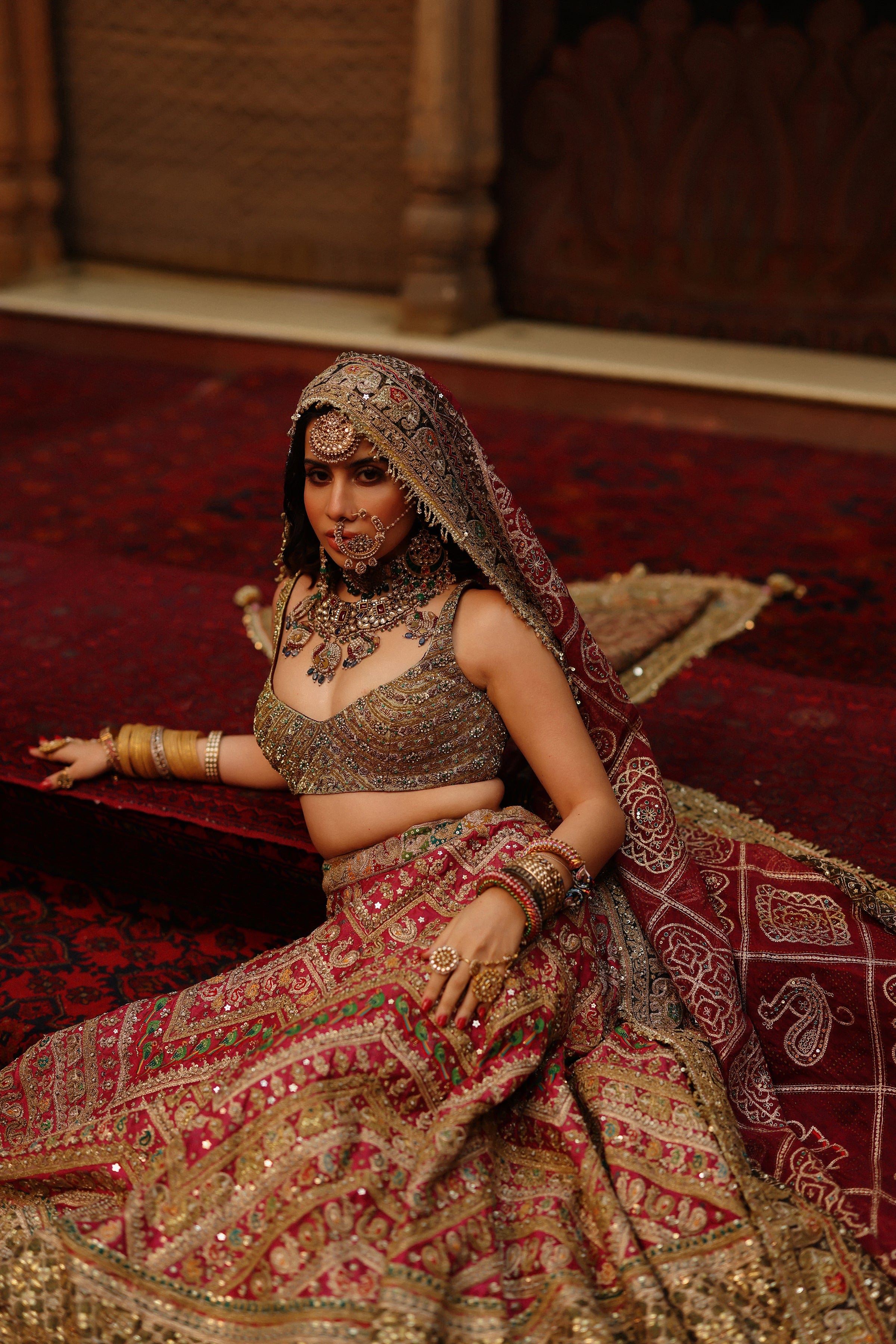 A Pomegranate pink lehenga with a crystal-encrusted blouse