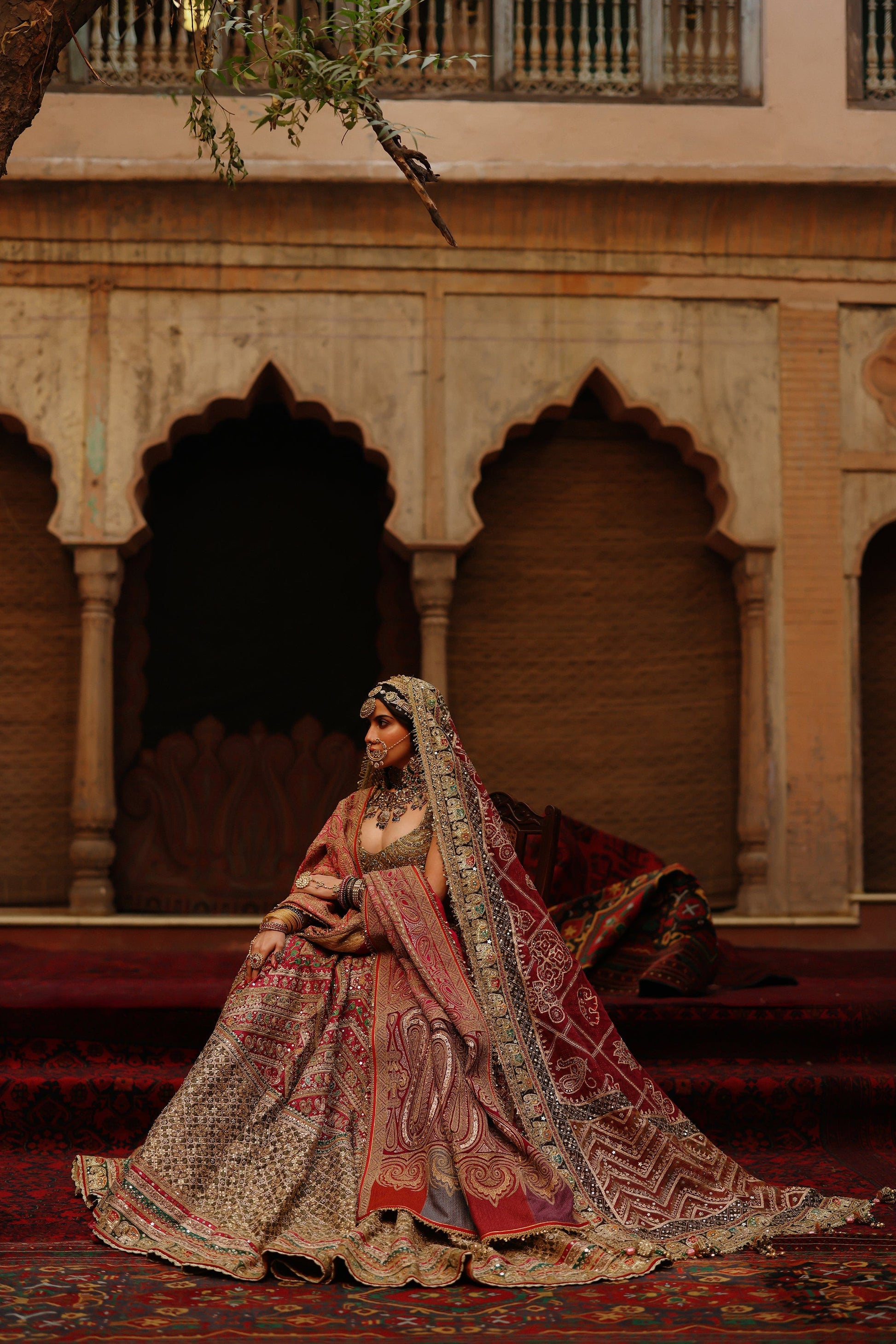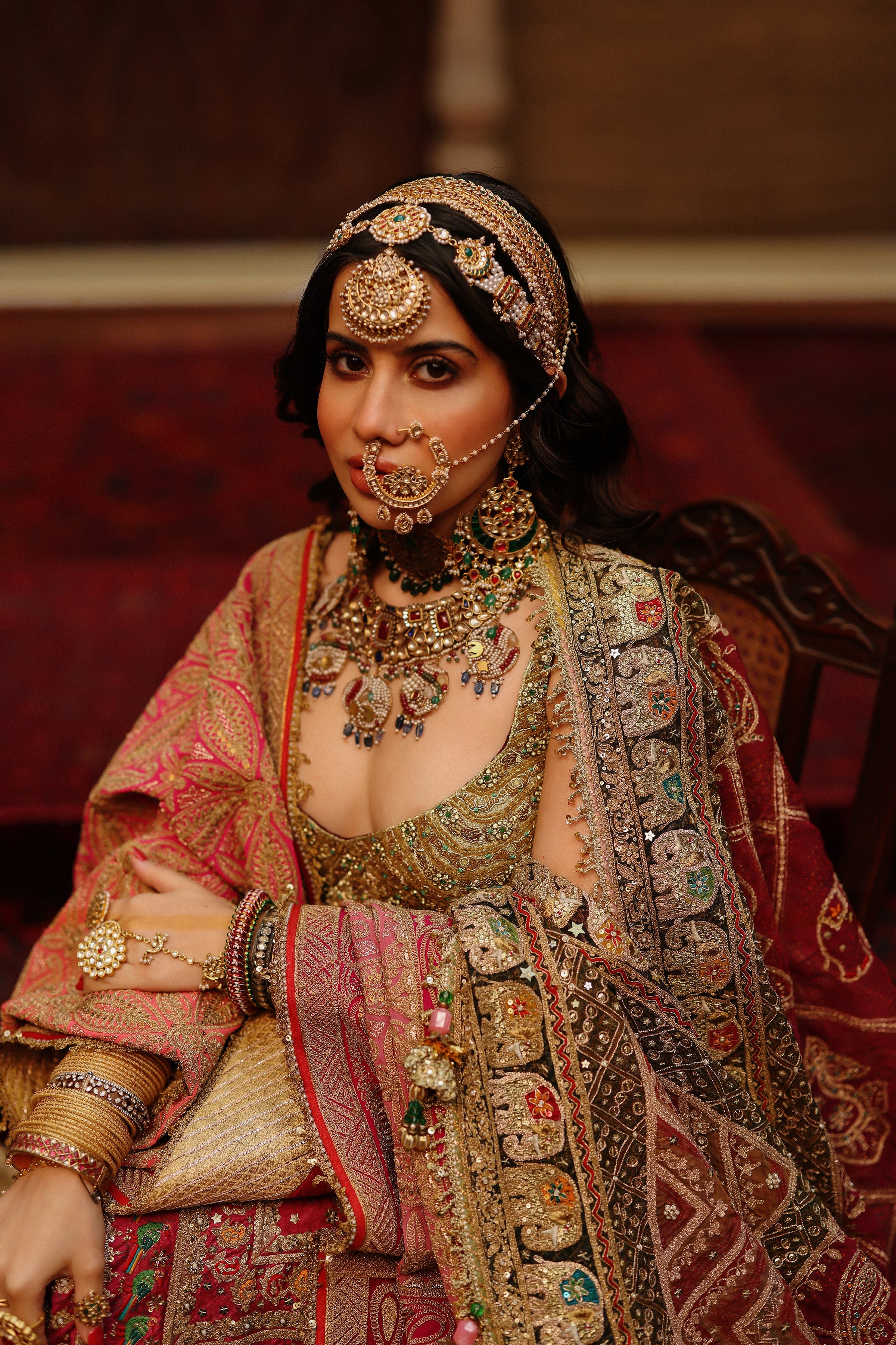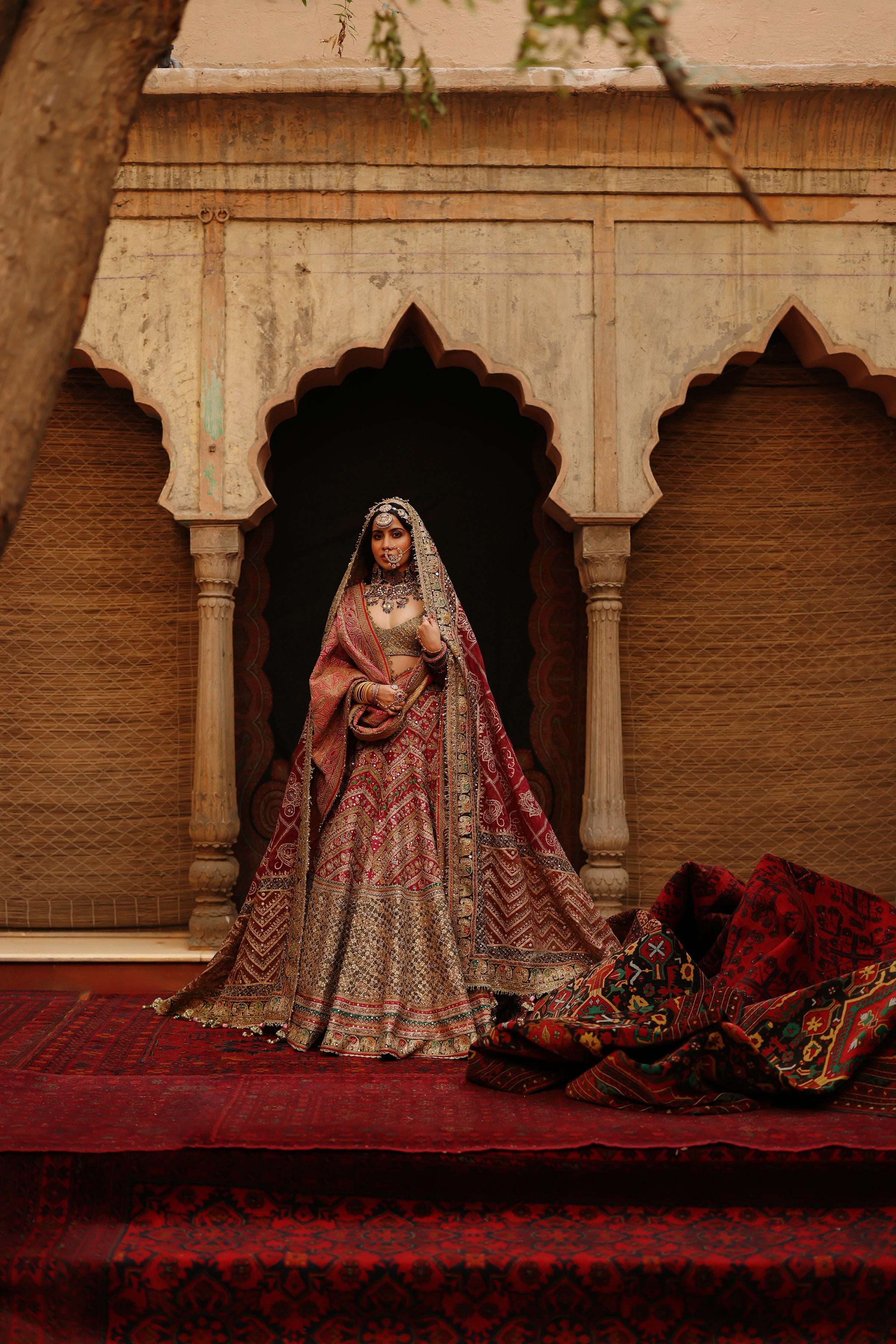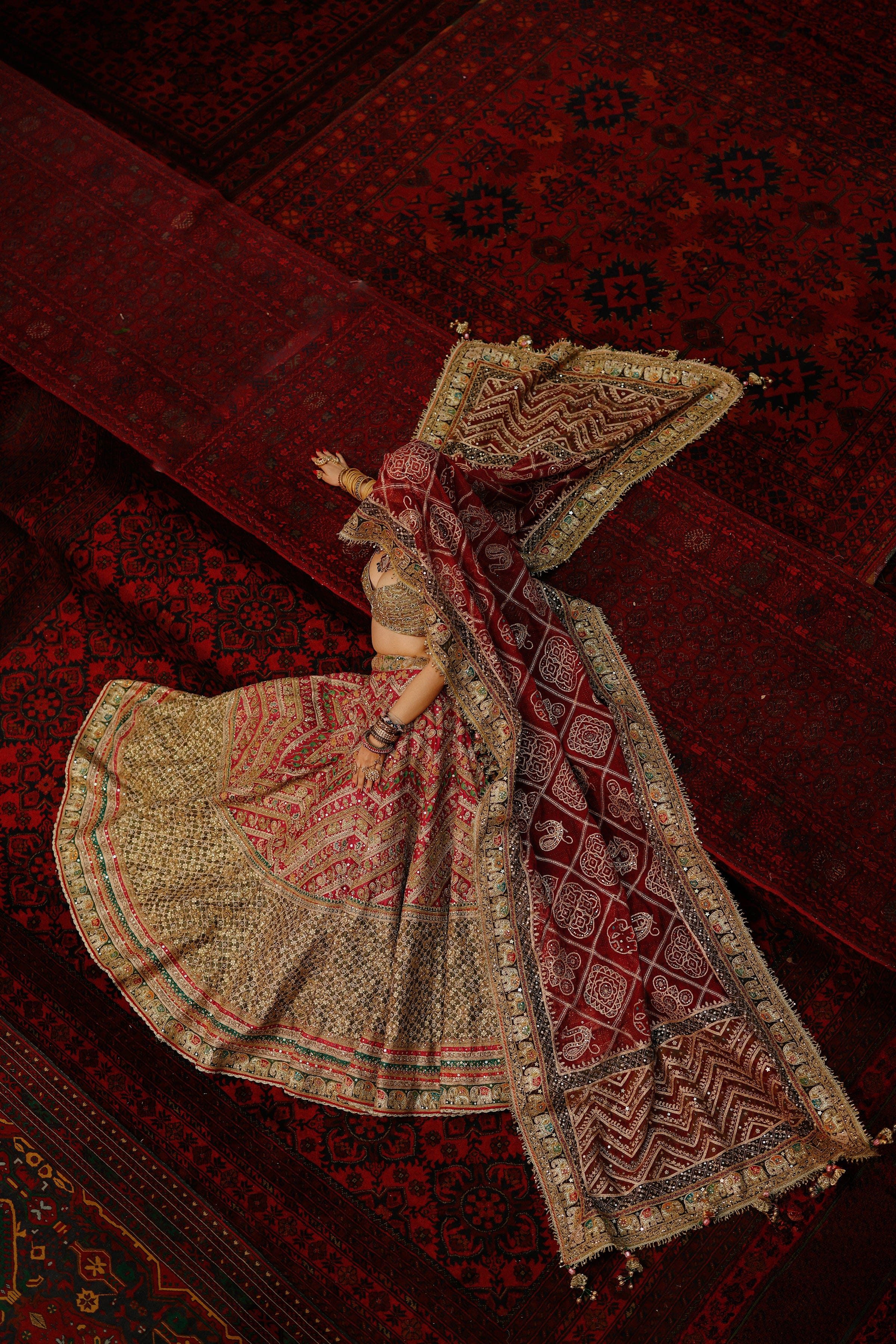 A Pomegranate pink lehenga with a crystal-encrusted blouse