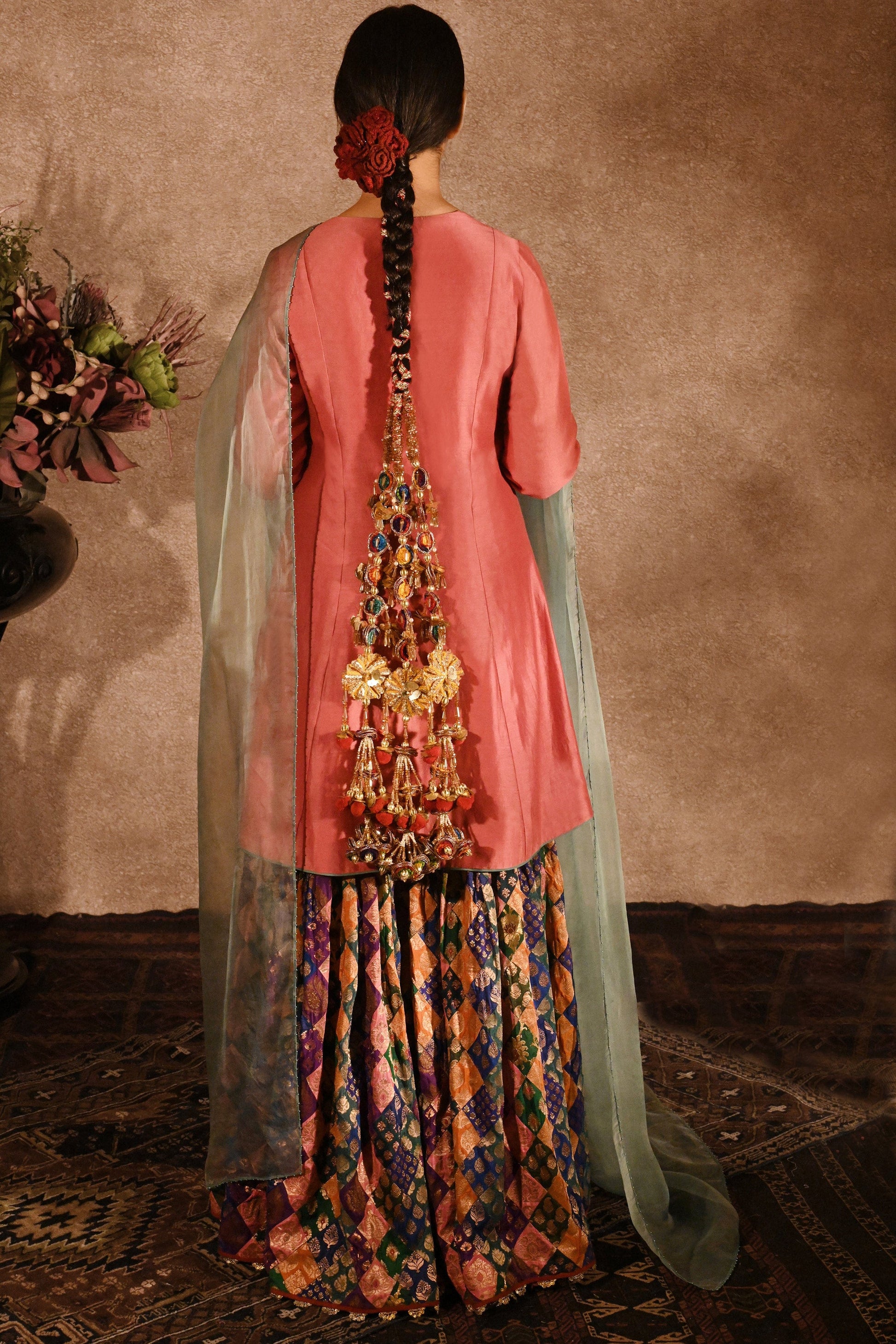This is a handcrafted product containing vintage fabrics, threads, sequins, zari, etc., and may have slight irregularities or imperfections. These irregularities are the result of the human involvement in the process and raw material that adds to the finished product’s charm while ensuring you have a "one-of-a-kind piece.”